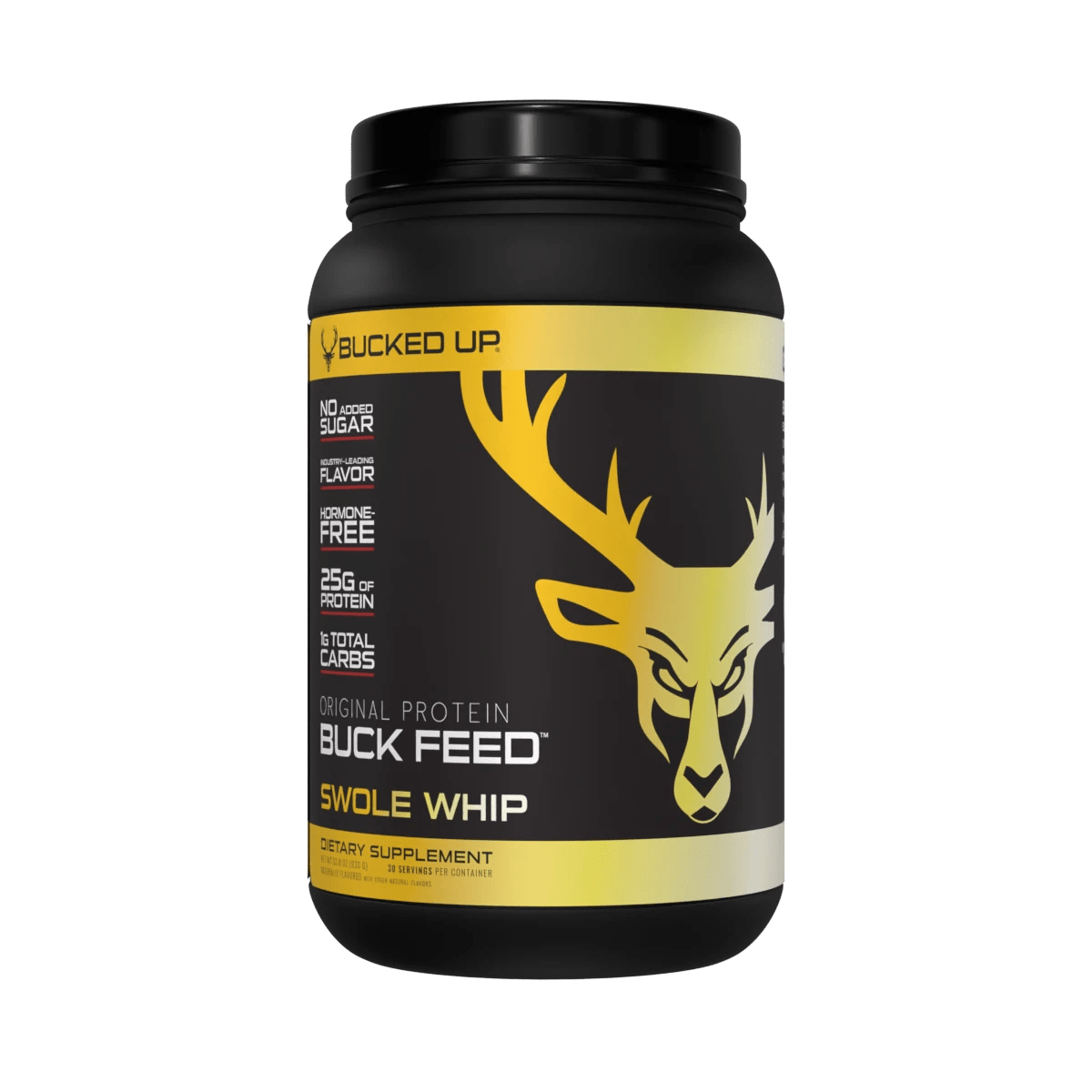 Introducing Bucked Up Buck Feed Protein – the ultimate combination of 25 premium grams of hormone-free Whey Protein and Deer Antler Velvet powder to help you achieve your fitness goals. Build and maintain muscle, optimize fat-loss, and enjoy mouth-watering flavors in every serving. Fuel your healthy lifestyle with Buck Feed.