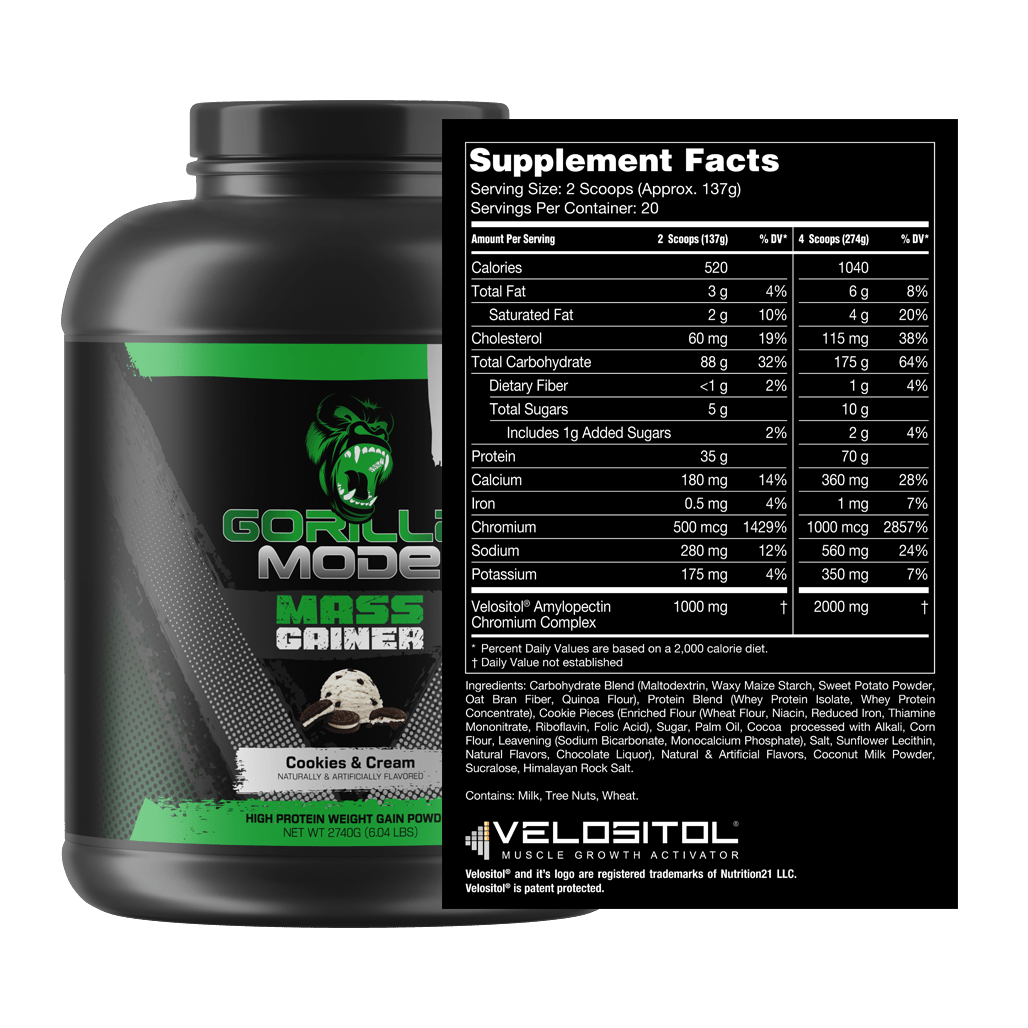- Hard Gainer Dose – 1040 Calories | 74 g Protein | 174 G Carbs (per 4 scoops)